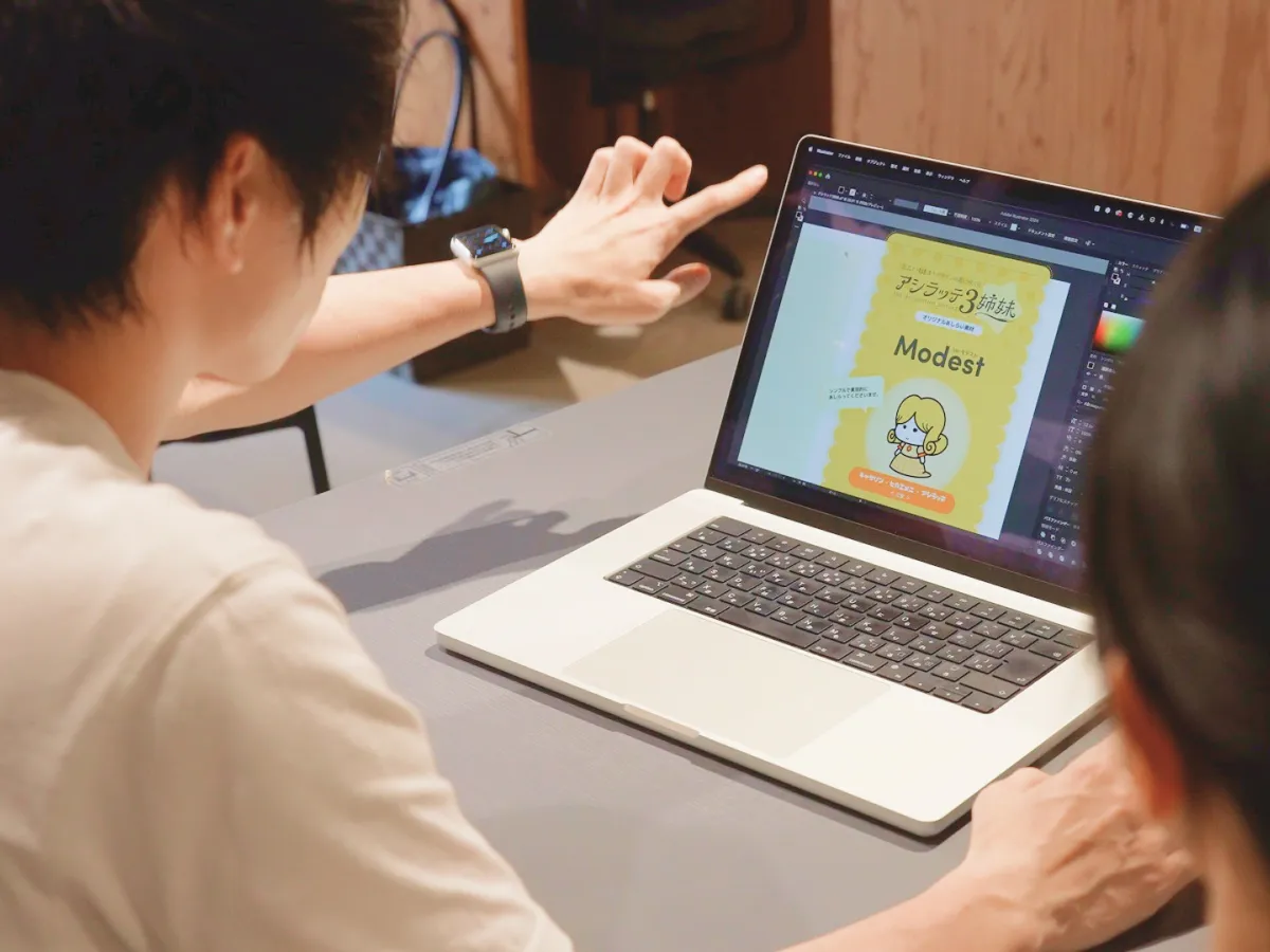 実演によるレクチャー!講師が自らデザインの見本を作成して見せたり、実際にその場で画面共有し実践しながらレクチャーを行うこともあります。ときには講師自らサンプルを作ったり、画面を共有しながら実演を行うことで、受講生がより具体的なイメージをもって学習に取り組めるようなサポートも行います。