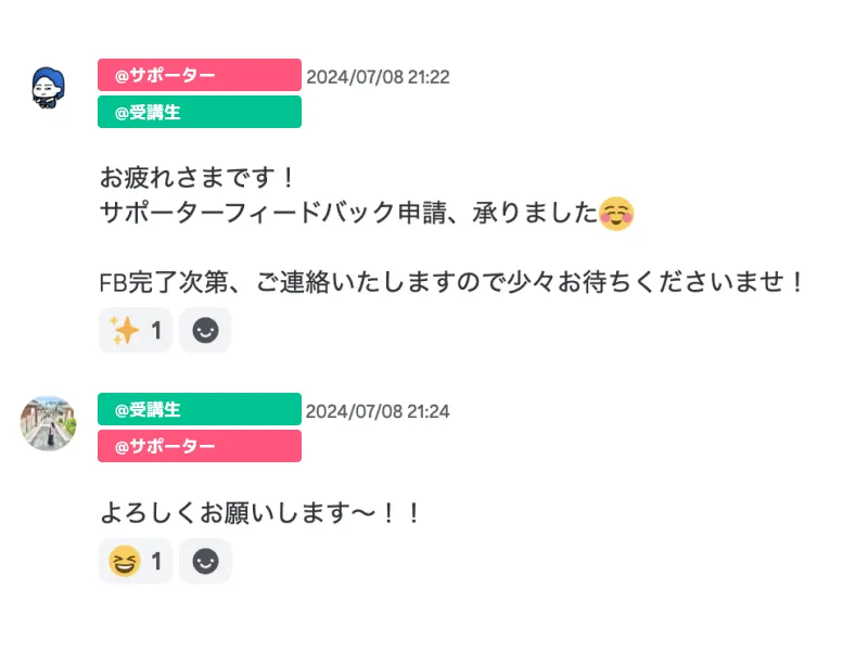 - あしざわさんは本当に受講生一人ひとりをよく見ていて、それぞれにあった指導方法や言葉選び、フィードバックをされていたと思います。